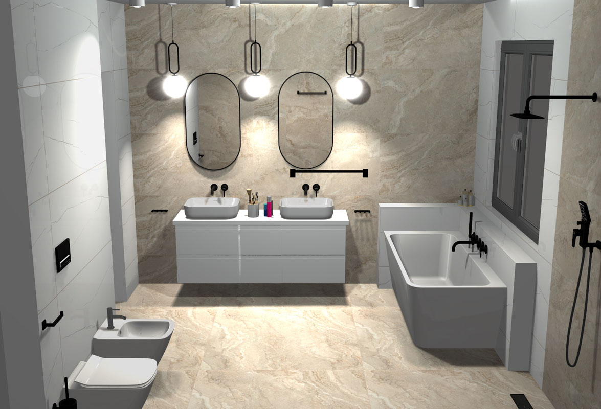 Wspólnie wybierzemy kolekcje płytek, armaturę, lustro i oświetlenie, a nasza projektantka przygotuje realistyczną wizualizację 3D. Gotowy projekt otrzymasz drogą mailową wraz z rozmieszczeniem elementów, co ułatwi montaż i wykonanie instalacji.